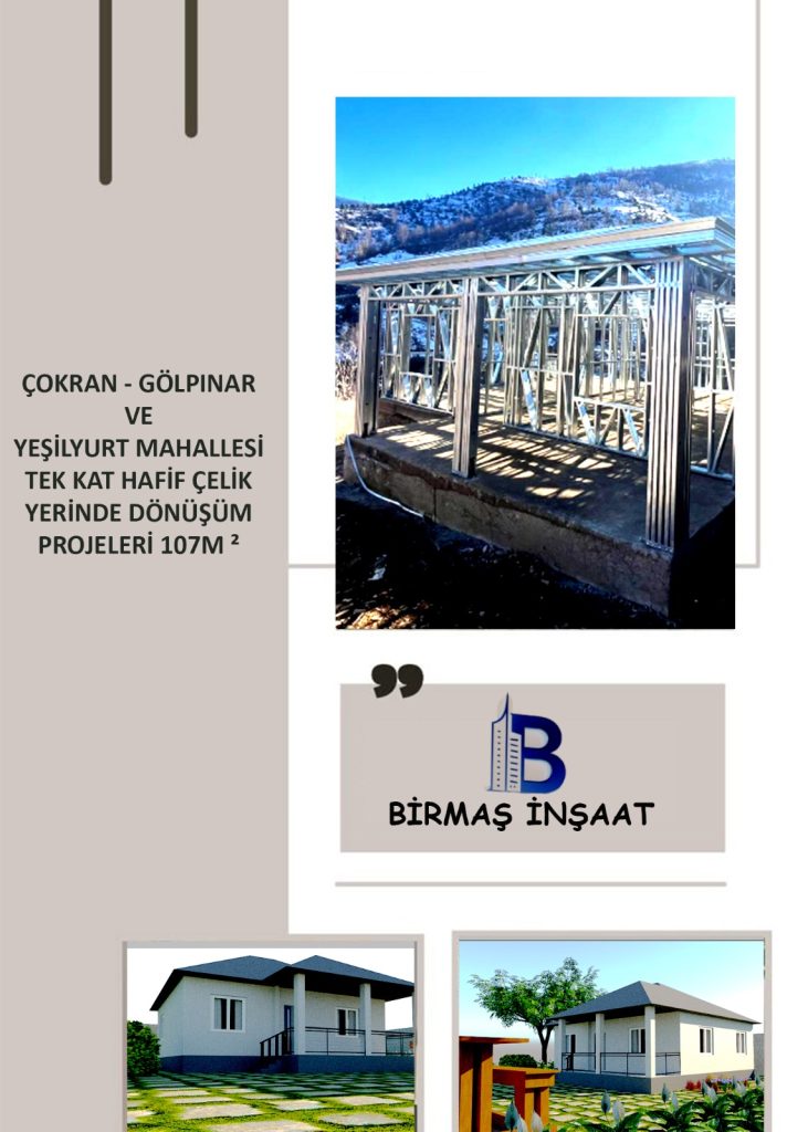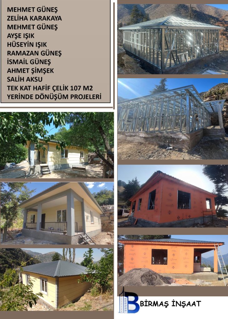 YERİNDE DÖNÜŞÜM KAPSAMINDA HAFİF ÇELİK TEK KAT EV PROJELERİ